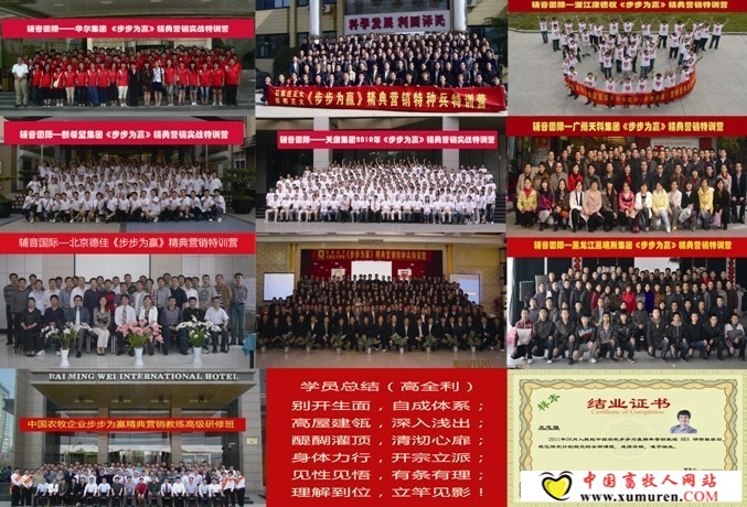 邀 請 函 尊敬的各企業單位: 眾所周知,沒有營銷模式的企業難以復制成功,沒有訓練能力的團隊無法實現造血,80%的員工流失于企業缺乏教練功能,80%的成本浪費于新員工不能快速創造價值,行業市場競爭的直面戰爭一觸即發,沒有高效執行的營銷團隊只能任人宰割…… 新形勢下的競爭格局,難道我們只能面對強敵束手無策?做為企業的營銷管理干部,我們到底應當承擔什么樣的工作?對待營銷人員,我們該如何招、如何訓、如何用、如何跟?工作的思路是什么?擁有“套路”,您的工作將舉重若輕,從容應對!僅僅擁有“知識”,在實際工作中往往不能學以致用。我們最需要就是實踐與理論的結合,需要思想的“覺悟”,更需要作戰的“套路”! “中國農牧企業步步為贏精典營銷教練MBA研修班”就是專為農牧企業營銷總監量身定做的,融營銷流程、制勝方法、實操工具為一體的系統農牧營銷教練課程!并由清華大學客座教授、中國農牧業營銷大 我們的使命就是讓一切變得可執行! 我們的目標就是真正的和營銷總監們一起分享打造營銷鐵軍、掌握營銷隊伍復制真諦、了解組織營銷的成功秘訣! 我們真誠邀請農牧企業相關人士光臨!中國農牧企業家MBA屬于您! 本次研修我們要解決的八大問題即營銷總監的八大困惑(課程的核心): 1、 如何運用系統方法與工具營造營銷團隊良好競爭態勢(兵法之勢)? 2、 如何在良好氛圍下加強紀律性訓練以持續保持執行力? 3、 如何教練并督導營銷人員堅持營銷流程提高營銷素質? 4、 如何教練并督導營銷人員熟練掌握營銷工具提高營銷效率? 5、 如何教練并提升營銷人員改進營銷控場能力以達到事半功倍? 6、 如何教練并提升營銷人員引導客戶增加彼此的戰略合作關系? 7、 如何通過啟動組織營銷順勢推動企業全員營銷以增進部門和諧? 中國農牧企業步步為贏精典營銷教練MBA研修班 組委會 通 威股份董事長 劉漢元 雨 潤集團總 裁 祝義亮 六 和集團總 裁 陶 煦 禾 豐股份董事長 金衛東 天 邦股份董事長 吳天星 金新農集團董事長 陳俊海 北農大集團董事長 張慶才 中國著名營銷專家 高建華 聯袂鼎力推薦: 中國農牧步步為贏精典營銷教練MBA研修班 (三天理論學習+二晚實戰研討,深度參與,學以致用!限額80人,額滿為止) 主辦單位: 支持媒體: 畜牧人 愛畜牧 中國飼料工業信息網 中國飼料行業信息網中國飼料科技網 中國獸藥營銷網 博亞和訊網 畜牧經理人網 搜豬網 飼料廣角 富英快訊 豬e網 中國飼料添加劑網 中國農牧網 農博網 中國養殖網 愛豬網 中國飼料信息網 中國畜牧獸醫網 中國畜牧獸醫人才網等(排名不分先后) 時間地點:2011年8月8日于上海報到,9-11日研修學習 目標對象:飼料及飼料添加劑企業、大型養殖企業和動保企業的總經理、副總經理、營銷總監、 市場總監、銷售總監、產品經理、大區經理等企業營銷中高層管理人員(建議:企業 組建高層團隊集體參會,以便于迅速形成共識,并保證信息的有效傳達與對稱!) 會務聯絡: 021-60919811 (Tel/Fax) 專線咨詢:15210845443 歡迎實名添加“中國農牧步步為贏教練”QQ群:142656617 教學模式: 1.全程軍事化特色管理,體驗高效執行力與參與度 2.三天兩夜行業案例分析與研討 3.分組討論,訓練為主,現場演練,嚴格過關 4.將銷售團隊管理融入培訓現場 報名費用:收費標準為5800元/人(含中國農業大學頒發的“中國農牧企業家MBA”認證費1000元;另包括會務資料費、會議室費、餐飲費及光盤費等),統一安排住宿,費用自理(9號、10號晚上安排課程,晚上21點前結束,11號下午4點結束)。 課程大綱: 第一部分:營銷策劃,從“怒”開始! 求之于勢,不責于人!營銷策劃絕非異想天開,抓住人性方能一舉突破; 1.精典營銷從策劃開始,挾引爆點,掘突破口 2.營銷策劃的關鍵點解析,任勢者,如轉木石 3.營銷策劃案例研討,舉一反三,方成正解 第二部分:激活資源,組織營銷。 盤點企業存量營銷資源,系統啟動企業營銷引擎 1.如何激發存量營銷資源 2.如何導入組織營銷 3.如何實現真正的“全員營銷” 4.組織營銷實例觀摩 第三部分:程序決定效率,執行決定成敗。
