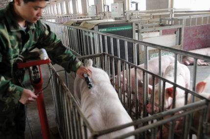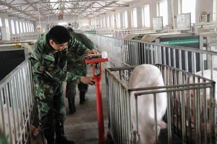 自3月下旬起,我站種豬質量監督檢驗測試中心技術人員開始對達到終測標準的種豬陸續展開測定工作,該項工作的進行標志著我省第四批種豬測定程序進入終測階段。測定技術指標主要包括:體重、體高、體長、胸圍、眼肌面積、背膘厚度。