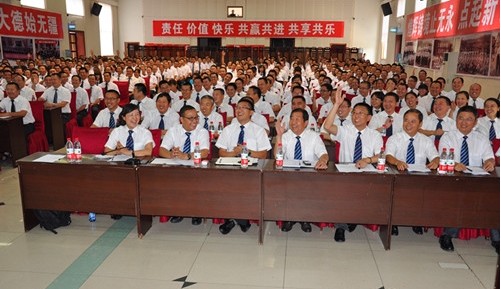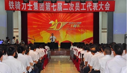 我參與,我奉獻,我快樂 --記鐵騎力士集團第七屆第二次員工代表大會 題記:“人的一生如果能得到一份自己喜歡的工作,并將其變成自己一生的事業那是一件何其幸福的事情……”本來我認為年輕的自己很難理解這句話的含義,但在今天,身處在鐵騎力士圣迪樂村的禮堂之中,我就被這一群洋溢著快樂與幸福的人打動著…… 鐵騎力士20歲了,在這值得慶祝的時刻,600名員工聚首圣迪樂村,參加了氣勢恢宏的“鐵騎力士第七屆第二次員工代表大會”.白色短袖襯衫、黑色西服長褲,讓鐵騎力士的俊男靚女在今日英姿颯爽;“立正、向中看齊……”軍隊般的口號讓這支活力四射的隊伍格外醒目。在整個報告會上,各員工代表小組為公司獻上了最為誠摯的感言。20年的驕傲、自豪,20年的快樂、歡愉,20年的付出、辛苦,讓騎士們在今天顯得格外動容。大家將20年的成就娓娓道來,將下一個20年的美好愿景一一呈現:如何生產出受市場歡迎的產品?如何更好地為經銷商服務?如何在企業發展的同時回報社會?如何讓員工在工作的同時擁有更強的幸福感?如何進一步開拓國內市場最終進軍世界…… 這里有鐵騎力士的創始人,這里有研發部門的技術骨干,這里有市場部的精英隊伍,這里有企劃部的優秀謀略,這里有后勤部的奮斗模范…… 這個時刻屬于鐵騎力士,屬于你,屬于我,屬于他……這里的騎士們快樂著,因為他們參與著,因為他們奉獻著,從未離開…… 鐵騎力士董事長雷光勇擔任現場互動主持人 會議現場氣氛熱烈