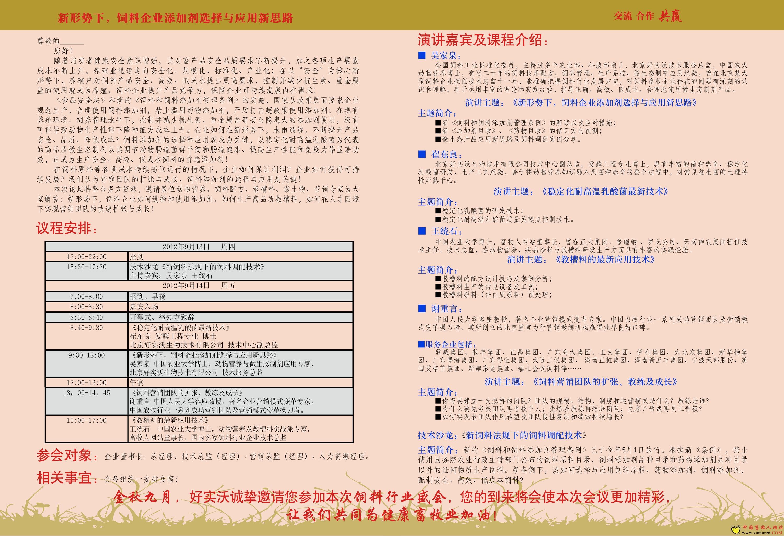 暨新形勢下,飼料企業添加劑選擇與應用新思路 (2012年9月13日-14日)