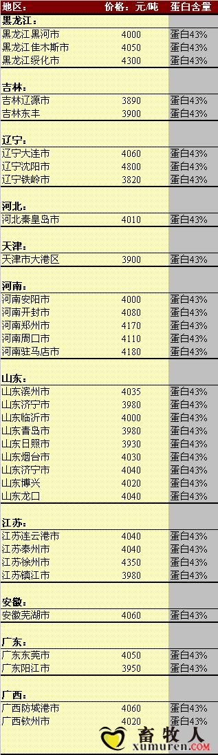 2013年5月22日國內豆粕價格匯總