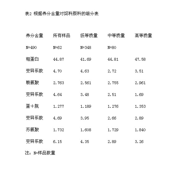 2 NIRS與色譜法測定的飼料原料氨基酸含量的一致性 NIRS分析結果的有效性,最終還要看其與色譜法測定值的吻合程度。圖1~3列出了德固賽公司利用NIRS和色譜方法測定的豆粕、肉骨粉和小麥的蛋氨酸以及賴氨酸含量之間的擬合情況。由圖以及相應的統計結果可以看出,NIRS方法對飼料原料的氨基酸含量的預測值非常準確和可靠。因此,在實際生產中,可以利用快速、低成本的NIRS 技術代替耗時、昂貴的色譜法測定飼料原料的氨基酸含量。 由于利用NIRS技術測定飼料原料氨基酸含量,不僅費用極其低廉,而且所用時間很短,因此獲得飼料原料氨基酸含量測定結果的時間主要決定于對原料進行采樣和制樣的時間。飼料廠可以通過快速、準確的氨基酸含量測定值,評估來自不同產地和供貨商的原料,實施真正的質量管理。 3 NIRS 技術在飼料生產中的作用 3.1 細分飼料原料 飼料廠可以根據氨基酸的測定值,將到廠的飼料原料進行細分。例如,以下幾個因素可以作為細分時考慮的因素:品種,種植方法,產地,加工條件。將飼料原料細分,能夠促使配合飼料廠更準確的優化配方。為了統計分析不同來源、品種或供應商原料的差別,所采集的樣品必須具有代表性。而且,每種來源或供應商的樣品至少應該有20個。如表2所示,根據粗蛋白質和氨基酸含量的測定值,飼料原料可以分為不同的質量等級。不同質量的飼料原料,應該以不同的價格購買。 如果配合飼料廠以相同的價格購買所有質量級別的飼料原料,那么飼料廠將會為氨基酸含量較低的飼料原料支付過高的價格。因此,當供應商提供的飼料原料氨基酸含量較低時,飼料廠應該調低支付價格或拒絕接貨。 3.2 提高配合飼料質量 NIRS技術還能充分保證配合飼料的質量。如果不能及時檢測到的飼料原料的養分變異,即使機械設備和混和技術達到最佳,也會嚴重影響配合飼料的質量。原料氨基酸含量較大的變異,不可避免的需要增加配合飼料的安全系數,從而增加生產成本。在養殖業中,飼料養分的變異,會導致動物生產性能的降低和畜產品質量變異的增加,尤其是像胸肉率和瘦肉率這些敏感指標。畜產品質量的降低或不整齊,會導致其價格的降低。如果飼料原料到貨時以及隨后能經常性的檢測其氨基酸含量,飼料廠則可以根據檢測的結果,對配方進行及時調整,從而保證配合飼料的氨基酸含量。 4 NIRS技術推廣中存在的問題與對策 NIRS 技術能夠降低飼料生產成本,提高飼料產品質量,但是許多飼料廠沒有購買NIRS 分析儀器,有些飼料廠雖然擁有自己的NIRS分析儀器,卻沒有能力建立可靠的氨基酸定標方程,在一定程度上限制了NIRS 技術的推廣。針對以上情況,可以采用一些更為靈活的方法,使飼料廠能夠在幾乎不增加成本的基礎上,獲得NIRS技術服務。沒有購買NIRS分析儀器的飼料廠,可以將采集的飼料原料樣品郵寄到相應單位進行測定。而已經購買了NIRS分析儀器卻沒有能力建立定標方程的飼料廠則可以與建立了NIRS 飼料原料氨基酸含量定標方程的單位合作,獲得定標方程的轉移和人員的培訓服務。定標方程轉移的前提條件是軟硬件之間的兼容性。另外,這些飼料廠也可以利用自己的NIRS分析儀對飼料原料進行掃描,然后將獲得的NIRS光譜值,通過電子郵件傳到擁有NIRS定標方程的單位,進行相應的數據處理,便可以獲得飼料原料的氨基酸含量值。通過這些方法,飼料廠可以在幾乎不增加成本的基礎上,利用NIRS技術,在線檢測飼料原料的氨基酸含量。通過在線檢測飼料原料氨基酸含量,飼料廠可以更有效的監控原料質量和調整配方,生產出優質、低價的配合飼料產品。 綜上所述,NIRS技術測定飼料原料氨基酸含量,具有快速、準確、成本低的特點。因此,飼料廠可以利用NIRS技術對主要的飼料原料氨基酸含量進行在線監測,調整配方和采購策略,降低生產成本,提高產品質量。 |