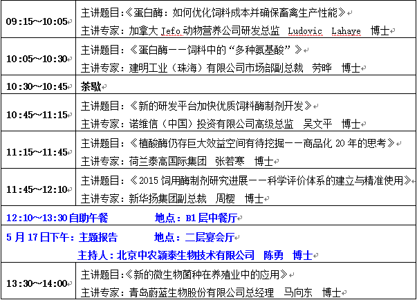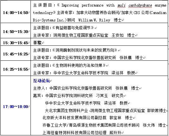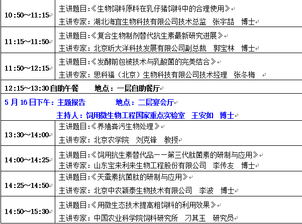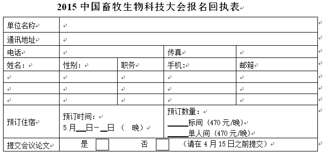 2015中國畜牧生物科技大會 2015年5月15~17日 重慶 會議主題:創新畜牧業生物技術研發應用 主辦單位:中國農業科學院飼料研究所 飼用微生物工程國家重點實驗室 北京中關村農業生物技術產業聯盟 飼料與畜牧雜志社 聯辦單位:北京大北農科技集團股份有限公司 北京昕大洋科技發展有限公司 青島根源生物技術集團有限公司 上海紐崔特飼料科技有限公司 協辦單位:建明工業(珠海)有限公司 武漢新華揚生物股份有限公司 上海杰康諾酵母科技有限公司 成都大帝漢克生物科技有限公司 湖北海宜生物科技有限公司 北京科為博生物科技有限公司 北京中農穎泰生物技術有限公司 上海梵藍國際貿易有限公司 思科福(北京)生物科技有限公司 會議禮品贊助單位:山東健源生物科技有限公司 會議茶歇贊助單位:唐山拓普生物科技有限公司 支持單位:中國生物發酵產業協會 首都生物飼料科技創新服務聯盟 中國畜牧業博覽會組委會 加拿大JEFO動物營養公司 支持媒體:農民日報 CCTV-7 中國飼料行業信息網 搜豬網 豆粒 豬e網 畜牧人網站 愛畜牧網站 東北飼料信息網 中國飼料工業信息網 《中國飼料》 《飼料工業》 《中國畜牧業》 《飼料廣角》 《賽爾傳媒》 《東北飼料信息》 《中國畜牧獸醫報》 天地經緯農業品牌咨詢機構 豬場動力網 畜牧大集網 中國養豬網 生物飼料--綠色安全與持續發展的必由之路 糞污處理--生物技術解決養殖環境的困境與出路 在以生物技術為主導的時代,生物技術的應用開創了畜牧業生產的新途徑,助推畜牧業的發展有了質的飛躍。畜牧現代生物技術的應用不僅在拓寬飼料資源、酶制劑開發、糞污生物處理、研制新型生物獸藥等領域成果顯著,在致力于飼料產品安全化、養殖環境優化、提高動物免疫力、減少抗生素應用、關注動物福利、滿足人類對畜產品風味要求、有效進行糞污處理等方面同樣發揮不可替代的作用。 如何利用創新生物技術提升健康畜牧業?中國農業科學院飼料研究所、飼用微生物工程國家重點實驗室、北京中關村農業生物技術產業聯盟、飼料與畜牧雜志社聯合主辦“2015中國畜牧生物科技大會”將于2015年5月15-17日在重慶君豪大飯店召開,著力探討畜牧生物技術的研發應用,分享創新畜牧生物科技應用經驗及需求,旨在加快畜牧生物新技術的推廣和應用步伐,推動畜牧業的健康發展。 一、會議日程: 2015中國畜牧生物科技大會日程安排 二、大會目的: 1.解決動植物生物發酵功能性蛋白關鍵技術,有效降低原料成本,提高飼料及動物產品品質; 2.應用微生態制劑減少飼用抗生素的應用,保證飼料安全,提升動物自然免疫能力,減少疫病防治成本; 3.提高酶制劑品質,拓展復合酶應用技術; 4.強化養殖場環境控制,應用生物技術有效解決糞污處理難關; 5.生物獸藥制劑研發思路拓展。 三、大會亮點: 1.行業技術巨擘談應用 --特邀大型養殖飼料企業技術總監 2.生物技術創新應用實例 --中國畜牧生物技術科技創新獎評定 3.機遇與未來 --世界畜牧生物應用成果匯展 四、大會合作方式及論文投稿 大會合作方式:協辦、贊助、支持;單項獨家冠名如招待晚宴承辦、資料袋、代表證、會刊廣告、資料入袋、會場展臺、禮品、接送站等。合作費用根據展示的內容有不同等級,歡迎各界人士垂詢、洽談。 大會接收論文集投稿,截止日期2015年4月15日。投稿郵箱:newfeed@caas.cn 五、時間地點:2015年5月15~17日(15日報到,16~17日開會),重慶君豪大飯店(重慶江北區金源路9號,023-86338888)。 乘車路線: ①重慶站:乘坐615路,在“金源世紀廣場站”下車。打車費用約15元。 ②重慶北站:乘坐217路(或270路 ,202路 ,821路 ),在“紅旗河溝西站 >”下車;乘坐863路(或127路>),在“金源世紀廣場站 ”下車。打車費用約30元。 ③重慶江北國際機場:乘坐軌道交通3號線(魚洞方向),在“紅旗河溝站 ”下車(1號口出),乘坐863路(或127路),在“金源世紀廣場站 ”下車。打車費用約60元。 六、參會對象: 大中型飼料與養殖企業總經理、技術總監、品管總監、采購總監;全國種豬場、繁育豬場及養豬企業一條龍企業采購、技術人員;相關生產企業高層管理人員、技術人員、經銷商;具有一定規模的養殖場場長、技術人員;為養殖場提供服務的企業人員;各大專院校師生及相關研究所科研人員。 七、會務費用: 會務費1800元/人,包括會務費、就餐費、資料費等;4月30日前報名享受優惠價格1500元/人;交通及住宿費用自理。在校研究生憑有效學生證參會費用另享優惠。 戶名:北京天可瀚傳媒科技有限公司 賬號:11006 0435 0180 1001 2233 開戶行:交通銀行北京農科院支行 八、聯系方式: 負責人:霍艷軍(13998118252) 包曉玲(15117953205) 聯系人:劉洋(13674182712) 王麗莎(13581804248) 報名聯系:梁麗萍(18240294890) 黃偉(13811659541) 電 話:010-62123852;024-62231566;010-62115538 傳 真:010-62123857 郵 箱:newfeed@caas.cn 新飼料科技眾議會QQ交流群:214199872 微信公眾號:飼料與畜牧