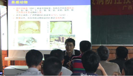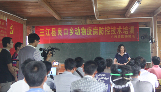 扶貧不僅僅是給農民捐款、捐物,關鍵是提高他們的自身發展能力,這樣才能從根本上解決貧困問題。針對三江縣的養殖情況和當前復雜的動物疫病形勢,特別是豬偽狂犬病呈現新的流行特點,吳健敏副所長帶領研究團隊成員舉辦了這次動物疫病防控技術培訓班。培訓班得到了廣西水產畜牧獸醫局派駐扶貧村的第一書記羅良鴻和莫有東的大力支持和積極配合。培訓班介紹了豬偽狂犬病的最新流行態勢和防控措施,還講授了雛雞養殖的關鍵技術和主要疫病防控。由于竹鼠養殖是三江縣村民用于脫貧的主要特色養殖項目,本次培訓在吳健敏副所長研究團隊的最新研究的基礎上,還介紹了目前引起竹鼠發病死亡的主要疫病和防制措施,并邀請桂林秋波竹鼠生態科技公司的梁秋波總經理講授了竹鼠養殖的技術要領。吳健敏副所長等人采用當地村民感覺更親切的“桂柳話”進行授課,一下子拉近了與村民們的距離,語言平實、易懂,村民們個個聽得聚精會神。 廣西電視臺“第一書記”攝制組當時正在三江縣拍攝產口村第一書記羅良鴻的事跡,聽說有此次技術培訓班,特意推遲一天回南寧,對培訓班進行了全程拍攝,并在培訓結束后,對吳健敏副所長進行了現場采訪。 目前吳健敏副所長的研究團隊正在承擔2013年國家農業科技成果轉化資金項目“豬偽狂犬病快速診斷及綜合防制技術應用示范”。將研究成果帶到農民身邊,促進農民增收,帶動農民致富是國家農轉項目的核心任務之一。此次動物疫病防控技術培訓班將豬偽狂犬病的最新研究成果及其它動物疫病的防控技術帶給了貧困縣的農民,是國家農轉項目與定點扶貧相結合的一次很好的嘗試。