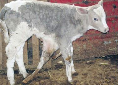 長著灰白花的小牛犢身材和其他牛犢一樣,除了正常支撐身體的4條腿外,在牛犢的胸腹部,還“悠蕩”著另外3條腿,其中一條腿的大小和牛犢的正常腿幾乎差不多,只不過腿根部位沒有骨關節;另外兩條腿則只有約40厘米長,在胸部下方呈彎曲形悠蕩著。 “這頭牛犢是在10月31日上午出生的?!迸俚闹魅藢O傳志介紹,“牛犢的媽媽是一頭奶牛,牛犢爸爸是夏洛萊肉牛。牛犢子出生時,脖子下面的一嘟嚕東西,可把我們嚇了一大跳。后來才發現‘肉嘟?!瓉硎?條腿。” 孫傳志介紹,目前這頭多腿牛犢體質挺壯實,健康狀況良好。 獸醫王亞平認為,牛媽媽原本應該懷了“雙胞胎”,只不過是后來另一個胎沒有發育成熟,最終導致多腿牛犢的誕生。王亞平準備為牛犢做“截肢”手術,讓它恢復正常。同時王亞平表示,這可能是國內已知長腿最多的牛了。 據資料顯示,2009年5月份,美國科羅拉多州出生一頭畸形牛,有7條腿和2根脊柱。不過,這頭牛犢出生后只存活了約10分鐘。