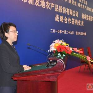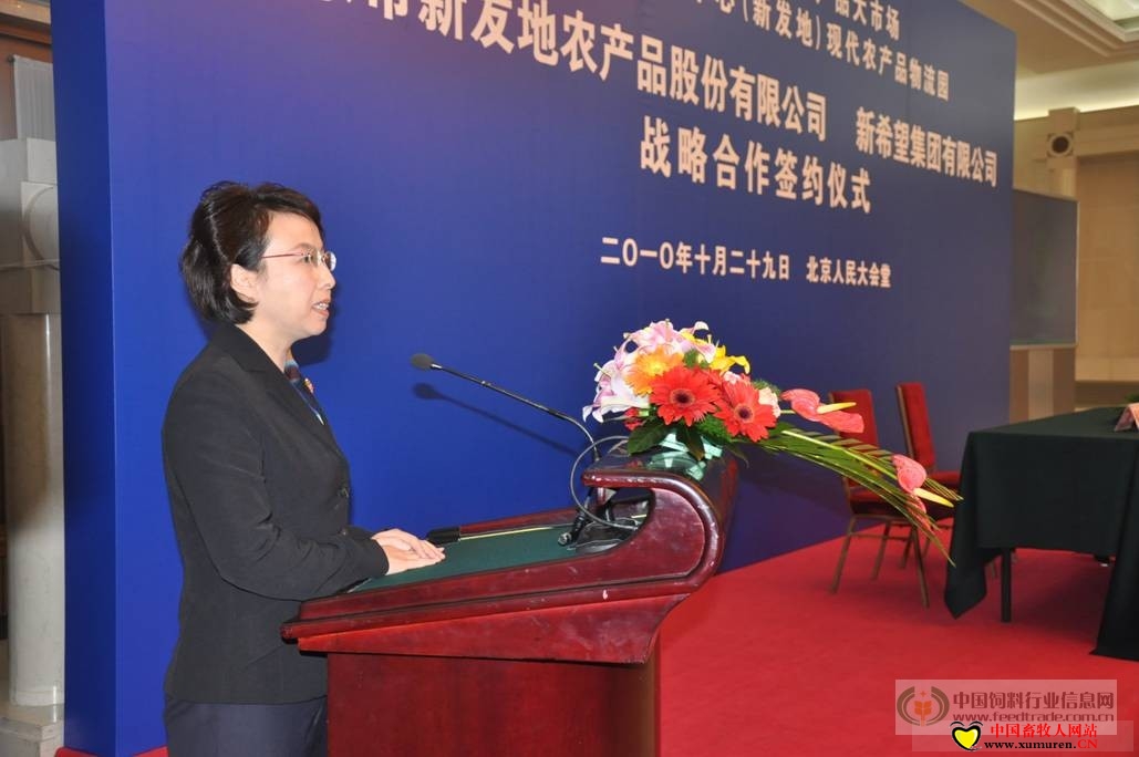 北京市副市長、北京市工商聯主席程紅致辭 北京市副市長、北京市工商聯主席程紅致辭中說,她祝賀兩家集團的能夠順利合作。兩家生產性的領軍企業和流通型的領軍企業強強聯手,進一步提高各自的核心競爭力,大公司與大集團產業和優勢互補,在金融、管理等方面實現互通融合,揚長補短,從而使新發地與新希望的新戰略合作實現新突破,更好的服務首都市民、服務首都建設和服務中國“三農”。