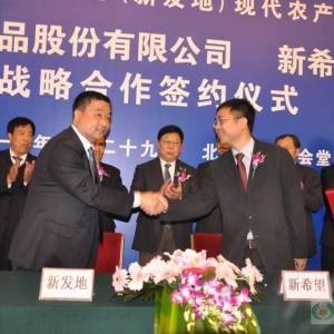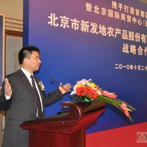 北京市新發地農產品股份有限公司董事長張玉璽發言 張玉璽在發言指出,新發地與新希望攜手,可謂“雙新、雙農”合壁,在格局上互補增值,延展產業鏈、實現對外擴張、提升公司結構治理和管理水平。以蔬菜業務股份制改造并率先上市融資,逐步實現整個市場業務上市的最終目標,依靠國家對農產品流通的政策支持和資本市場的資金優勢,通力打造以“保供給、保安全、保通暢” 為宗旨的“環境友好型“、資源節約型的“首都國家農產品大市場”。北京市新發地農產品股份有限公司總經理趙義群與新希望集團有限公司董事副總裁王航代表雙方企業進行了簽約。 隨后,國內媒體就本次強強聯合的兩家企業董事長劉永好和張玉璽進行了采訪。 前瞻 兩家國家級農業產業化龍頭企業的強強聯手,最顯著的特點是“兩大雙新,優勢互補,攜手雙贏”。即大基地與大市場有效對接,構建農牧產品產銷一體化格局,形成從種植養殖、加工運輸到市場銷售的完整產業鏈條;大公司與大集團產業和優勢互補,在金融、管理等方面實現互通融合,揚長補短,從而使新發地與新希望的新戰略合作實現新突破,更好的服務首都市民、服務首都建設和服務中國“三農”。 此次戰略合作的主要目的是北京市新發地農產品股份有限公司著眼于北京打造世界城市,深入貫徹落實北京市委、市政府關于北京市農業企要走高端、高效、高輻射之路,按照建設全國一流農產品批發市場的目標全面推進“內升外擴”(即內部升級改造,對外擴張,構建首都農產品安全供應體系)的戰略實施,進一步健全公司體制,強化企業管理,完善法人治理結構,推進現代企業制度,通過引進新希望集團良好的品牌和雄厚的資金,將北京市新發地農產品股份有限公司打造成類似長城、故宮等享有盛譽的首都名片,并以此為契機告訴世界人民,中國的農副產品質量是安全的,進而助推北京打造世界城市。 背景資料 北京新發地農產品批發市場2009年交易量90.2億公斤,交易額302億元人民幣,承擔著北京市70%的蔬菜、80%的水果供應,交易量、交易額連續八年雙居全國第一,是首都名符其實的大“菜籃子”和大“果盤子”,形成了買全國賣全國的大流通格局,直接或間接帶動全國近百萬農民就業,國務院總理溫家寶曾先后兩次來此視察。 新希望集團創業于1982年,是中國最大的農牧企業和民營企業之一,也是中國最大的肉蛋奶供應商之一,2009年銷售收入超過 500億元,擁有400家企業和6.5萬名員工。秉承“為耕者謀利,為食者造?!钡睦砟?,在行業內“聯合求發展”,廣泛聯系和幫助行業內的龍頭企業共同前行。