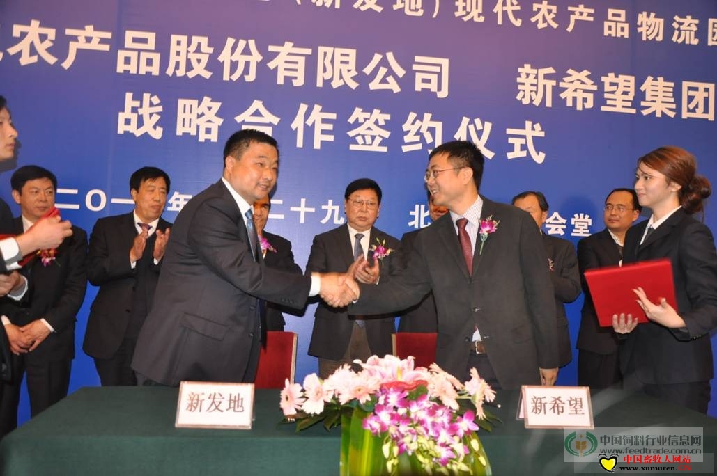 | 10月29日上午,北京最大的農產品流通市場——北京市新發地農產品股份公司(下稱“新發地”)攜手中國最大的農牧企業——新希望集團,在人民大會堂隆重舉行戰略合作簽約儀式。這兩個知名企業表示,為打造國家菜籃子工程建設的領軍企業而努力,要擔當起民生的重任。目前,首要任務是全力打造 “首都國家農產品大市場”暨“北京國際商貿中心新發地現代農產品物流園”,引領國家農產品大市場體系的建設。國家有關部委和北京市政府及相關部門的領導出席了簽約儀式。