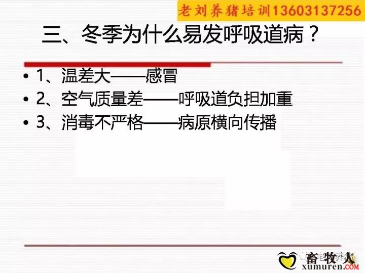 另外,冬季的消毒工作與比其它季節要差;除了人為的消毒外,陽光的消毒功能減弱,舍外的病原不能被殺滅,隨時都有帶進豬舍的可能;另外,因為舍外溫度低,靠水消毒的方法無效,也是消毒不嚴的因素之一。 來 ...