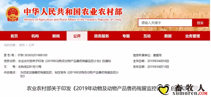 2019年4月10日,農業農村部發布《2019年動物及動物產品獸藥殘留監控計劃》,規定了24種化合物在8種動物/組織(雞/蛋、雞/肝、雞/肉、牛/奶、牛/肉、羊/肉、豬/肝、豬/肉)中的殘留限量。 來源:農業農村部 ...