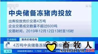 12月10日,華商儲備商品管理中心官網發布通知,公司將組織實施中央儲備凍豬肉投放工作,出庫投放競價交易4萬噸,每個企業交易成交數量不超過600噸,交易時間為2019年12月12日13時至16時。 華商儲備商品管理中 ...