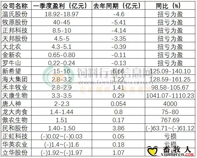 截至4月16日,農牧行業共有18家企業公布第一季度業績預報,因受豬價利好的消息,凡是有養豬業務的農牧企業,第一季度凈利潤均為正,且手里豬越多,賺的越多;這18家企業中,凈利潤為正的有15家,其中有7家同比去年扭 ...