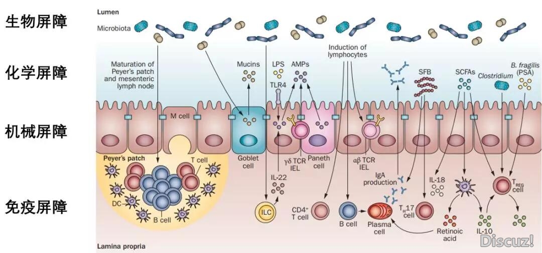 腸道是維持腸道內環境平衡和阻礙致病菌及毒素的先天性屏障。腸道屏障包括機械屏障、化學屏障、微生物屏障和免疫屏障。 機械屏障又叫物理屏障,其生理結構基礎是黏膜上皮、固有層和黏膜肌層。腸上皮細胞通過細胞連接 ...
