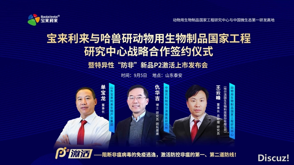 寶來利來與哈獸研國生生物戰略合作簽約儀式暨特異性“防非”新品P2激活上市發布會 2020年寶來利來“防非”新品隆重鉅獻,寶來利來與哈獸研動物用生物制品國家工程研究中心進行戰略合作簽約儀式——暨特異 ...