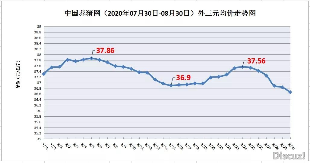 2020年08月31日,據豬價系統數據監測:生豬(外三元)均價為36.78元/公斤,豬價較30日上漲0.12元/公斤;生 豬(內三元)均價為36.10元/公斤,豬價較30日上漲0.29元/公斤;生豬(土雜豬)均價為35.62元/公斤,豬價較3 ...