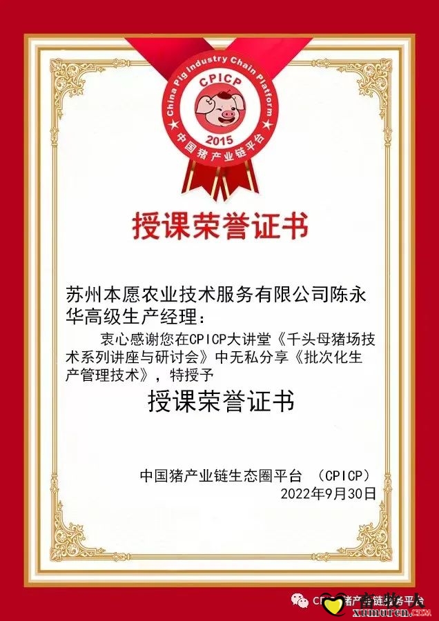 尊敬的千頭及以上母豬場的老板和技術負責人,尊敬的觀眾朋友們,尊敬的陳永華先生,尊敬的點評專家們,大家晚上好!今天是9月30日晚上,臨近國慶佳節,朋友們放棄了與家人團聚和休息!來這里聽講座,我代表CPICP感謝 ...