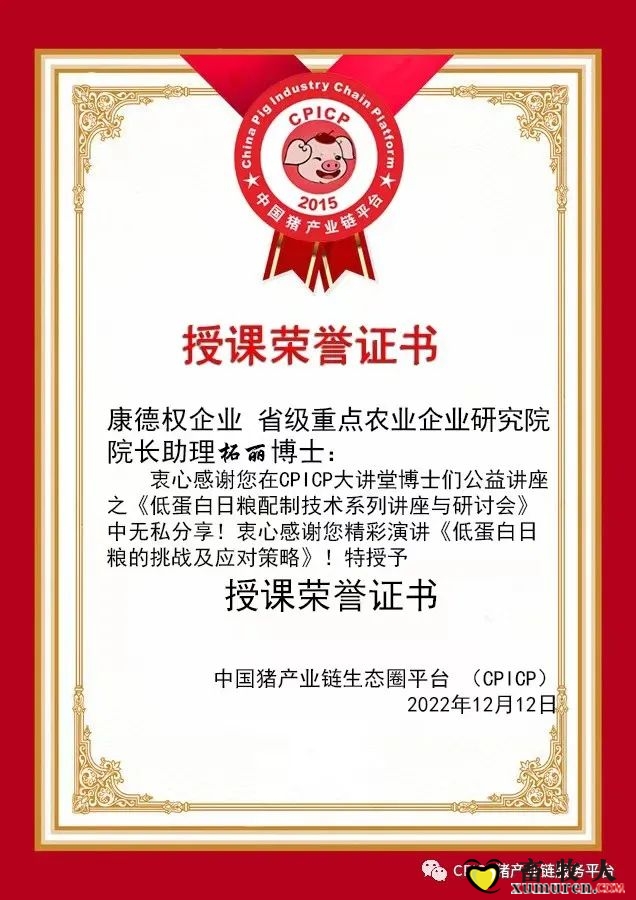 正文摘要:今天是博士們公益講座,低蛋白日糧配制技術系列講座與研討會的第12場!目前,原料價格高企,農(nóng)業(yè)農(nóng)村部部署全面推進豆粕減量替代行動,博士們?yōu)榱送七M行業(yè)的發(fā)展,挺身而出,積極響應國家的號召,參加這個低蛋白日糧 ... |