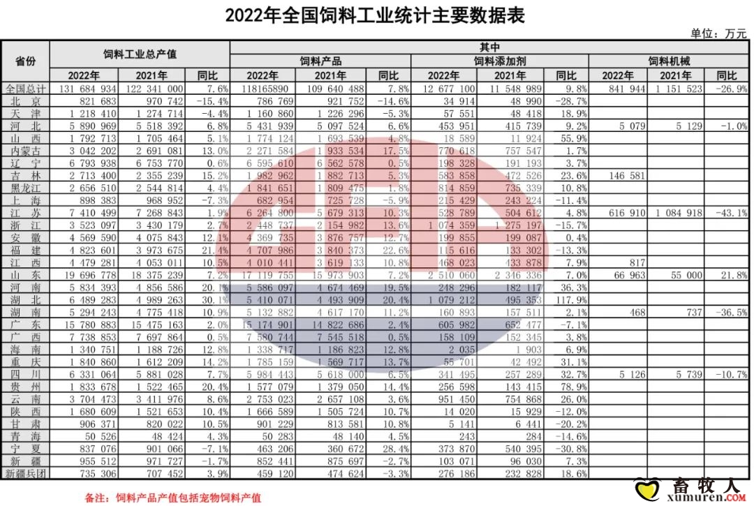 正文摘要:2022年,全國(guó)工業(yè)飼料產(chǎn)值、產(chǎn)量雙增長(zhǎng),產(chǎn)品結(jié)構(gòu)調(diào)整加快,規(guī)模企業(yè)經(jīng)營(yíng)形勢(shì)總體平穩(wěn),飼料行業(yè)創(chuàng)新發(fā)展步伐加快。 一、飼料工業(yè)總產(chǎn)值繼續(xù)增長(zhǎng) 全國(guó)飼料工業(yè)總產(chǎn)值13168.5億元,比上年增長(zhǎng)7.6%;總 ... |