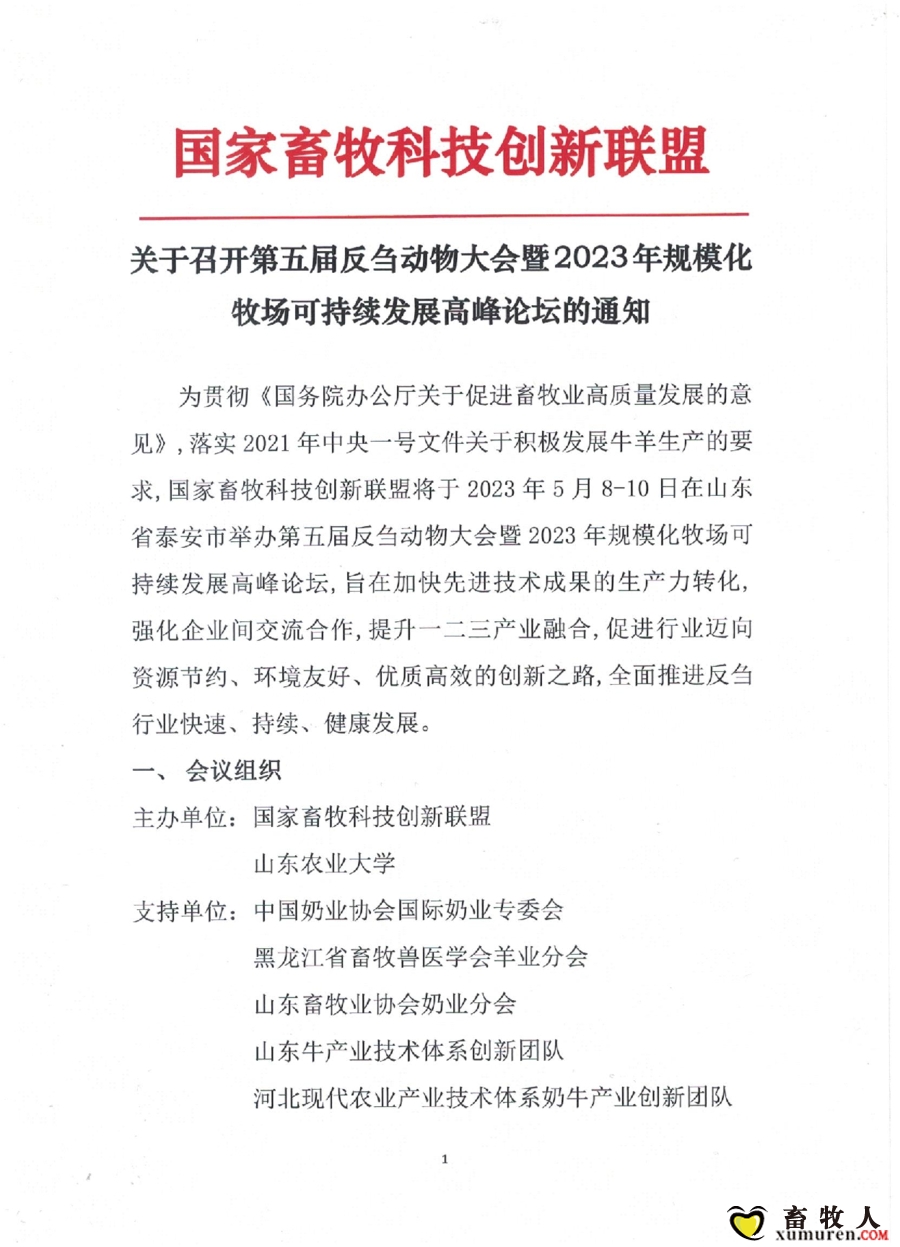 關于召開第五屆反芻動物大會暨2023年規模化牧場可持續發展高峰論壇的通知