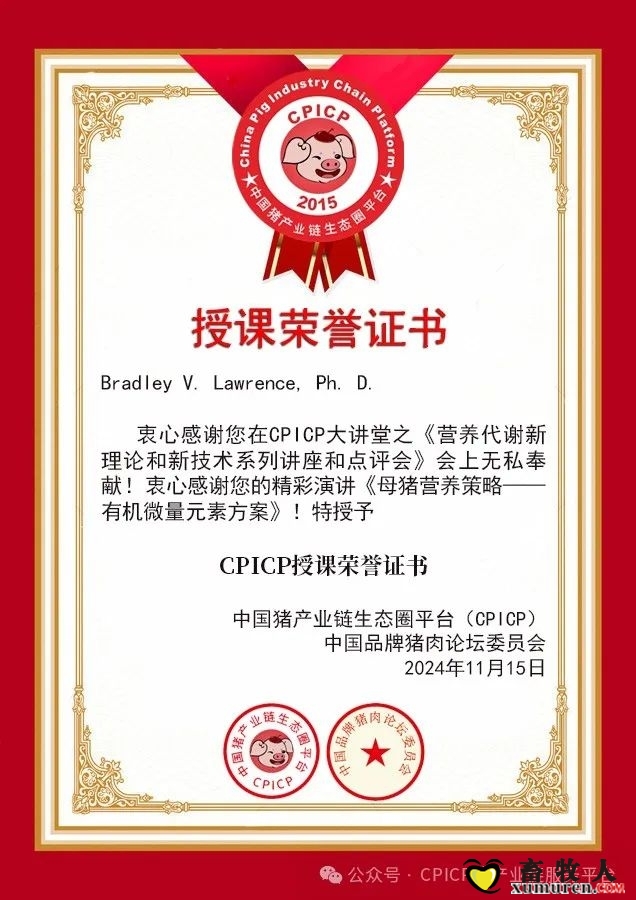 尊敬的豬產業鏈上相關單位的領導、技術及營銷主管們,尊敬的講座嘉賓勞倫博士,尊敬的翻譯穆玉云博士,尊敬的點評專家萬海峰副教授和萬建美博士,尊敬的線上的觀眾朋友們,大家上午好! 今天是2024年11月15日上午, ...