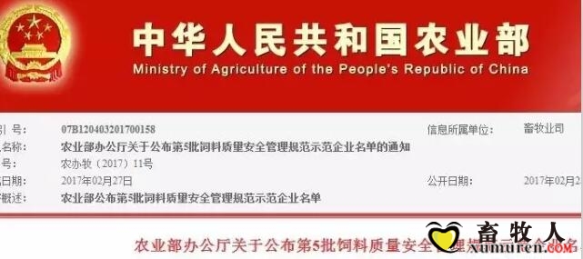 農業部辦公廳關于公布第5批飼料質量安全管理規范示范企業名單的通知 各省、自治區、直轄市畜牧(農業、農牧)廳(委、局、辦),飼料工作(工業)辦公室: 來源:互聯網 ...