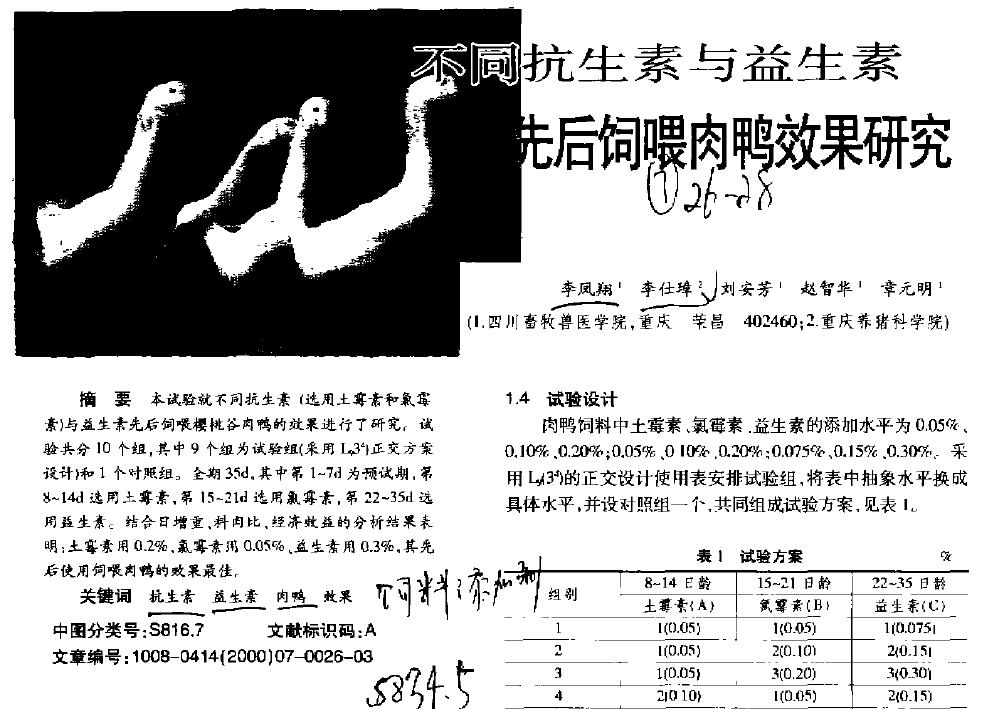 下載地址:不同抗生素與益生素先后飼喂肉鴨效果研究