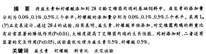 下載地址:不同檸檬酸、益生素水平對肉雞料重比的影響