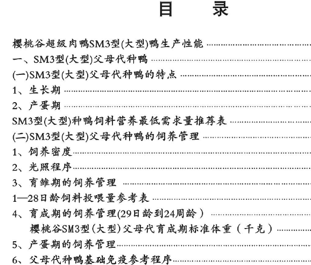 內容介紹:櫻桃谷sm3生產性能、飼養管理、營養需要