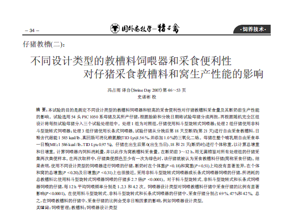 仔豬教槽_二_不同設(shè)計(jì)類型的教槽料飼喂器和_省略_食便利性對(duì)仔豬采食教槽料和窩生 |
