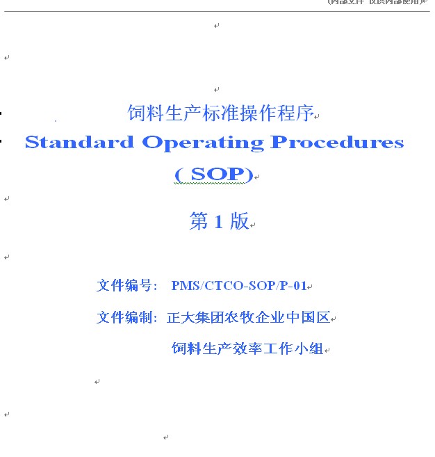 內容介紹:正大集團農牧企業中國區 飼料生產效率工作小組 完整的飼料生產管理體系文件