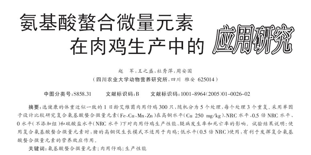 氨基酸螯合微量元素在肉雞生產(chǎn)中的應(yīng)用研究 |