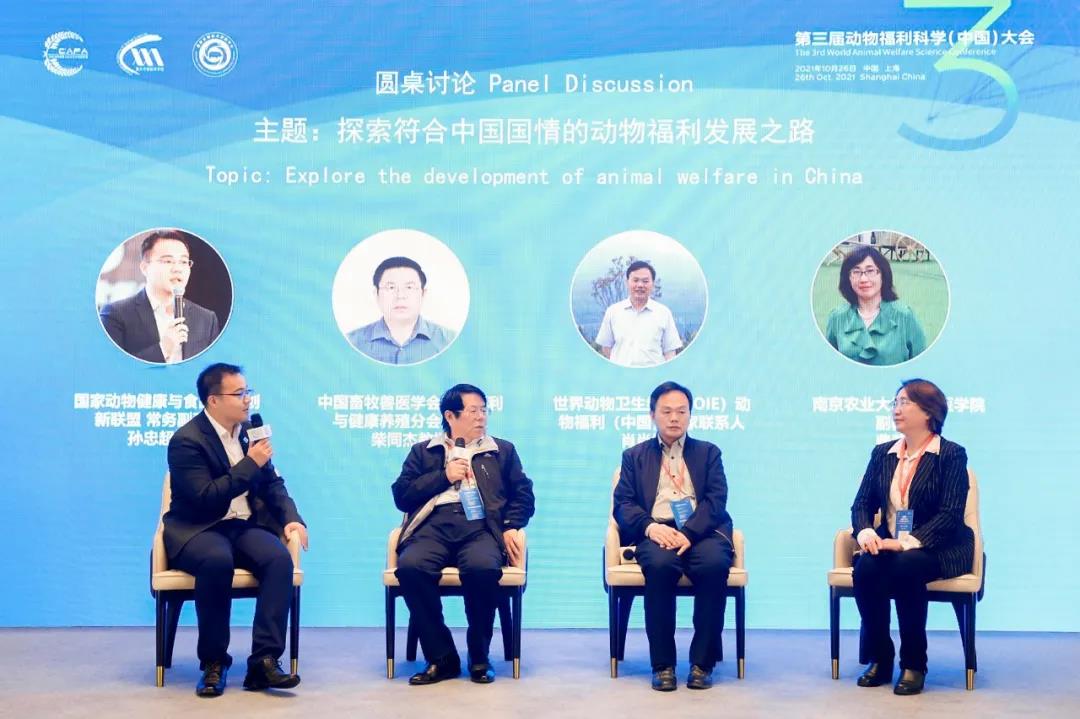 中國畜牧獸醫(yī)學會動物福利與健康養(yǎng)殖分會理事長柴同杰教授、南京農業(yè)大學動物醫(yī)學院費榮梅教授、世界動物衛(wèi)生組織(OIE)動物福利(中國)國家聯(lián)系人肖肖博士圍繞探索符合中國國情的動物福利發(fā)展之路展開深入討論與交流,聯(lián)盟常務副秘書長孫忠超博士主持了本場圓桌討論。