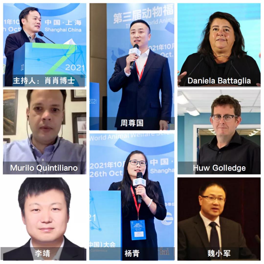 下半場由世界動物衛(wèi)生組織(OIE)動物福利(中國)國家聯(lián)系人肖肖博士主持,聯(lián)合國糧農組織(FAO)動物福利項目官員Daniela Battaglia、世界農場動物福利協(xié)會(CIWF)中國首席代表周尊國、FAI Farms 動物福利科學家Murilo Quintiliano、中國農業(yè)大學動物醫(yī)學院副教授李靖、全球食品合作伙伴 (GFP)中國代表楊青、伊利集團奶牛科學研究院培訓與防疫保健中心主任魏小軍、英國人道屠宰協(xié)會(HSA)首席科學家Huw Golledge,圍繞FAO如何有效推動全球動物福利發(fā)展-經驗和實踐案例分析、農場動物福利全球改善策略和技術趨勢、全球水產福利技術研發(fā)與實踐-機會與挑戰(zhàn)、世界馬屬動物福利技術現(xiàn)狀和發(fā)展、加速實現(xiàn)中國非籠養(yǎng)蛋雞養(yǎng)殖發(fā)展、奶牛養(yǎng)殖福利技術及對產奶生產性能的影響、英國人道屠宰技術分享與福利認證進展等內容展開演講。