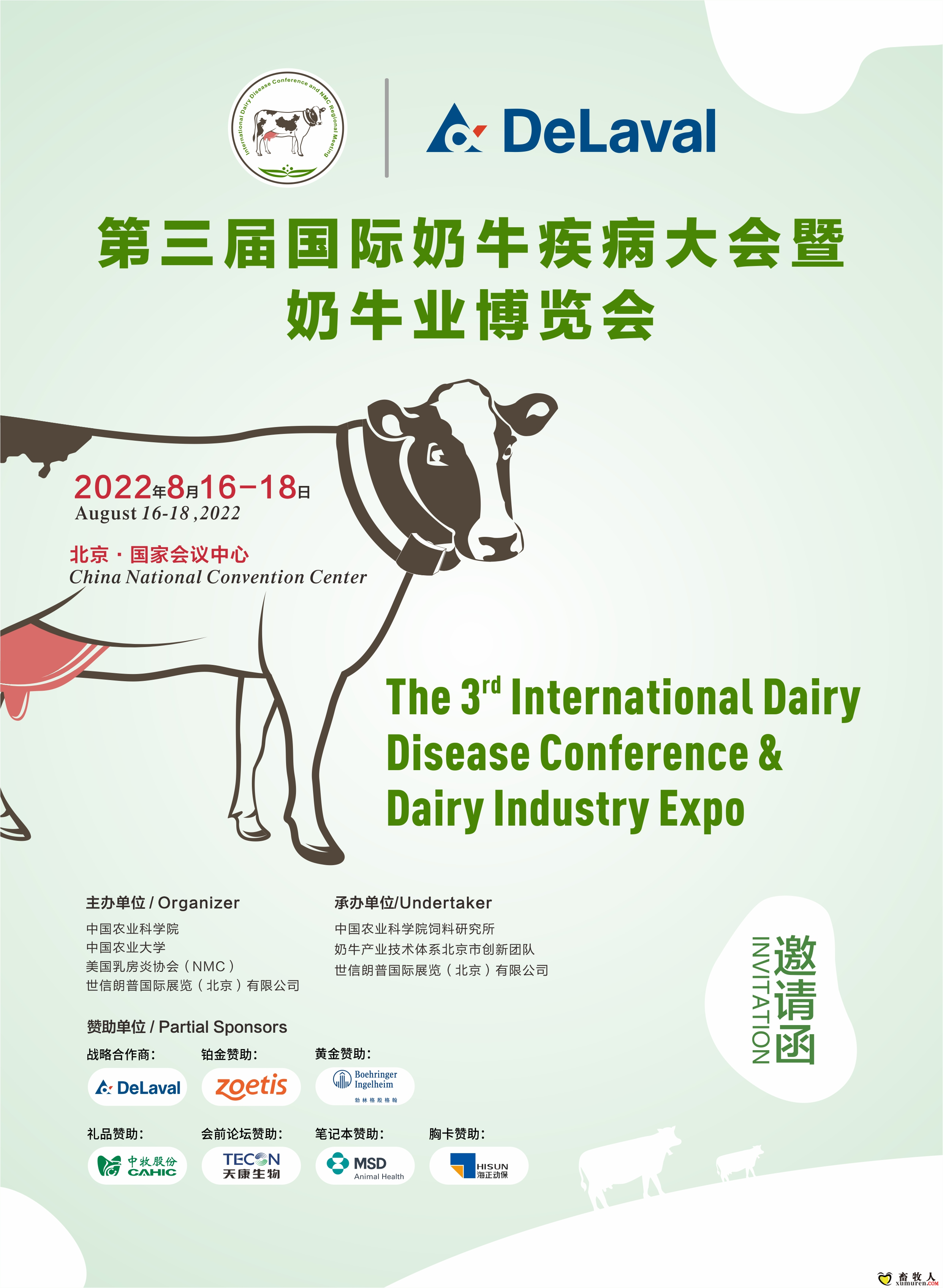 第三屆國際奶牛疾病大會暨奶牛業博覽會將于2022年8月16-18日在北京·國家會議中心舉辦。大會將繼續邀請中國、美國、英國、智利及比利時等國家的權威專家主講,為您帶來全球奶牛疾病防治及診斷的新理念、新技術和新方案,與您共同分享新時代、新形勢下的奶牛疾病診斷、疾病預防、安全用藥、擠奶廳管理、牧場工人培訓、牛奶質量安全、成本控制、質量管控、現代化奶牛養殖等領域的國際最新科研成果、養殖理念、可行方案等,為奶牛養殖從業者提供一個學術互動、信息共享、互惠互利、共同進步的平臺。
