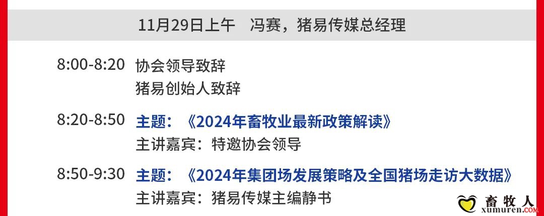豬易 2024 生豬產業數據大會將為您揭曉答案!在這里,您將獲得最前沿的市場分析、最實用的成本控制策略以及最具前瞻性的行業發展洞察,為您在未來的養豬業競爭中搶占先機、穩健前行提供有力的支持和指引。